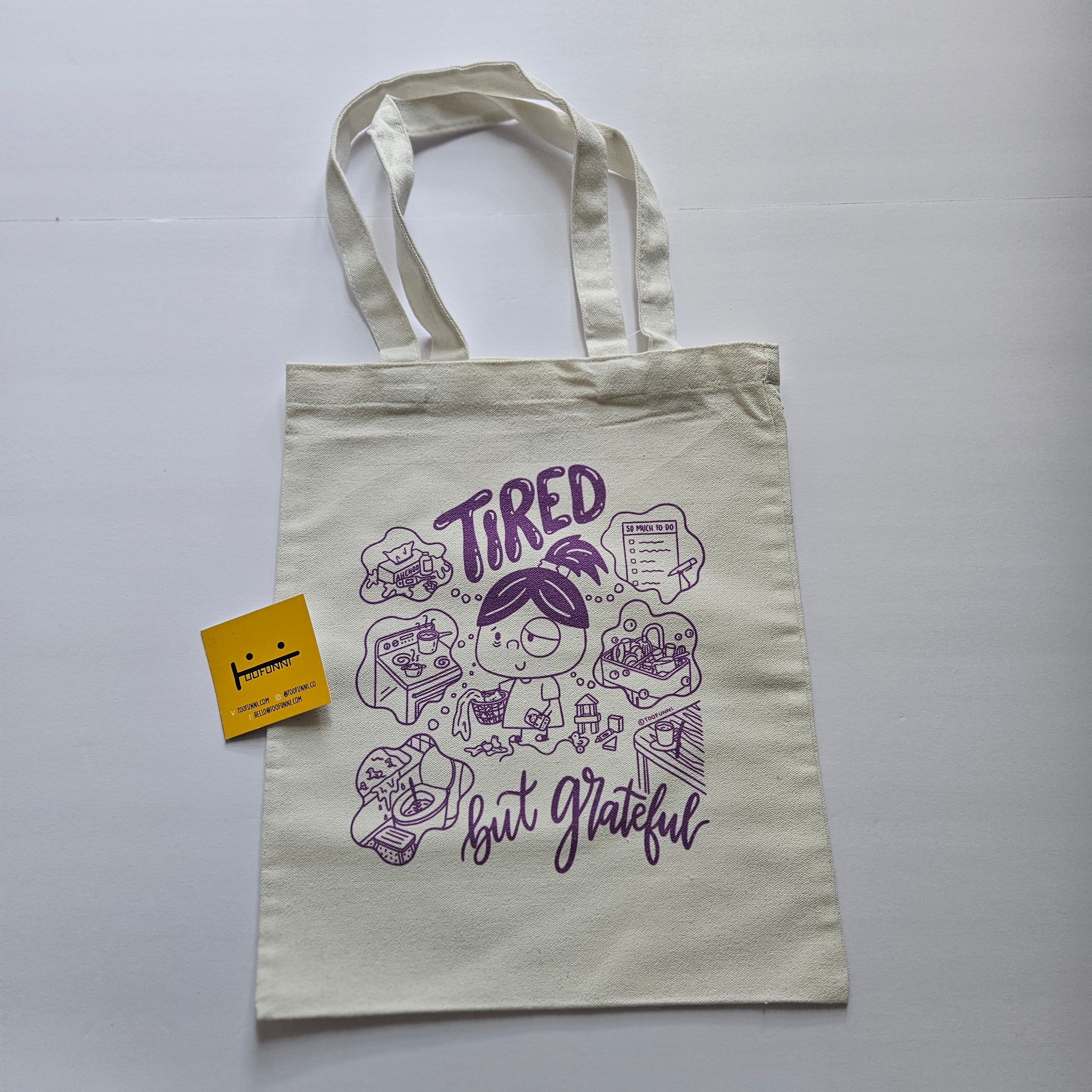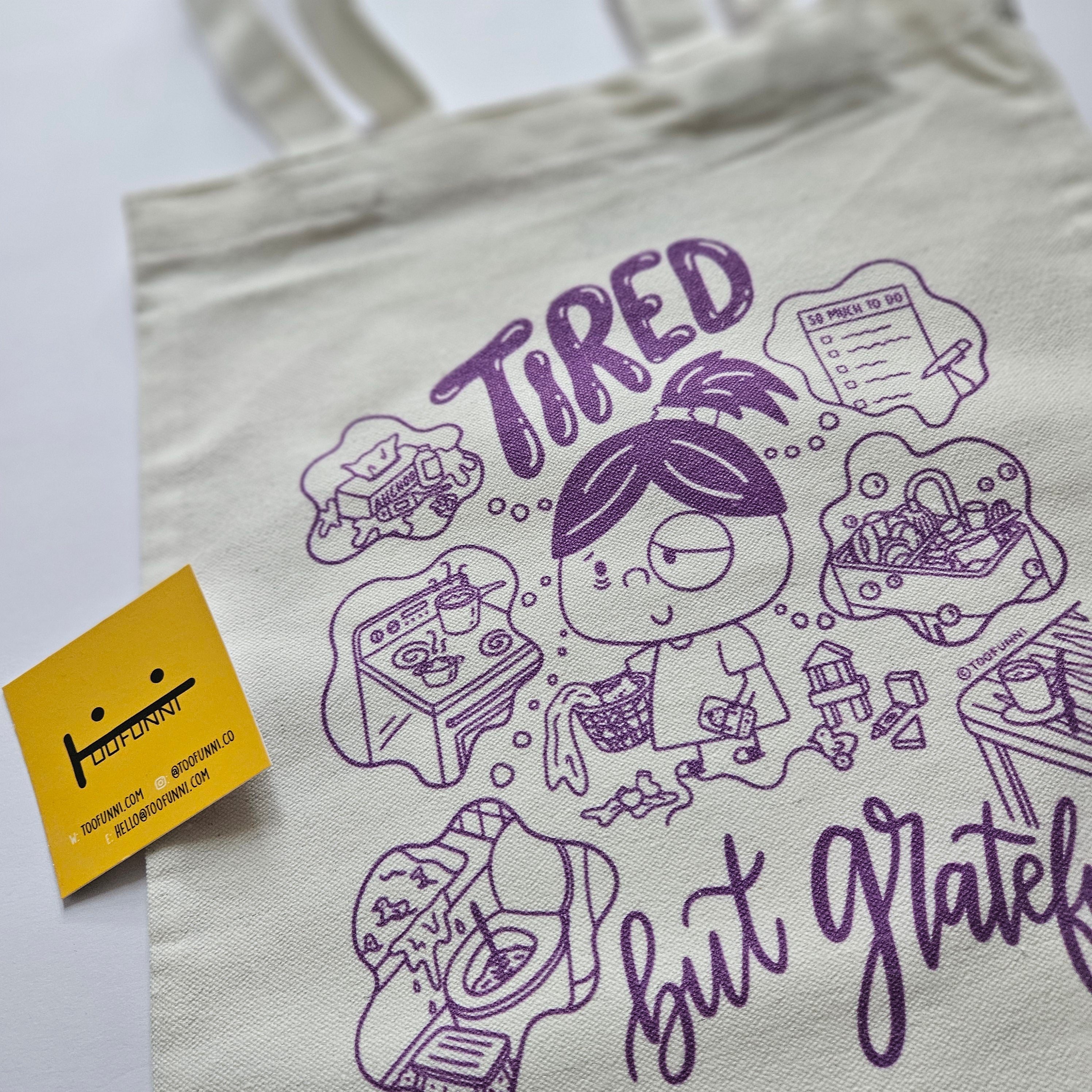TIRED BUT GRATEFUL (Purple) - Small White Tote Bag